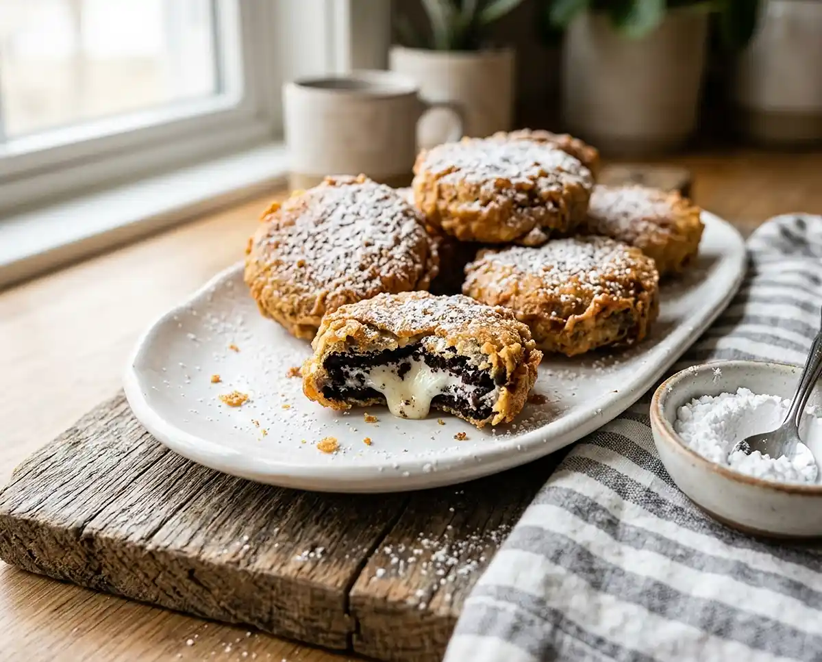 - Flavor swap: Try Golden Oreos with a batter that has a pinch of nutmeg added. The vanilla-on-vanilla combination is quieter and more dessert-forward, which is great when youโre serving these as a plated dessert rather than a snack.