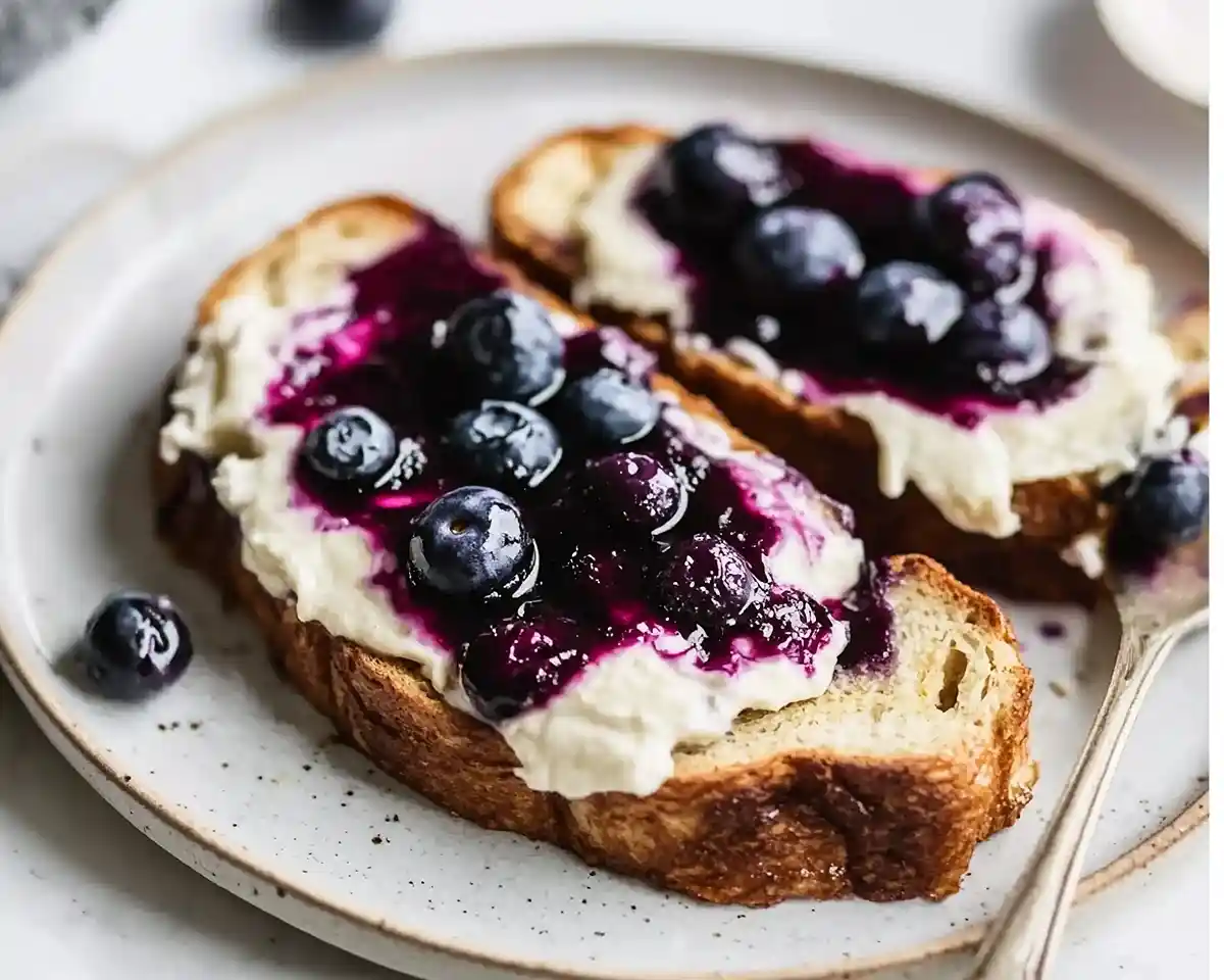 Indulge in blueberry cheesecake french toast with creamy filling, homemade blueberry jam, and cinnamon-spiced custard. Weekend brunch perfection!