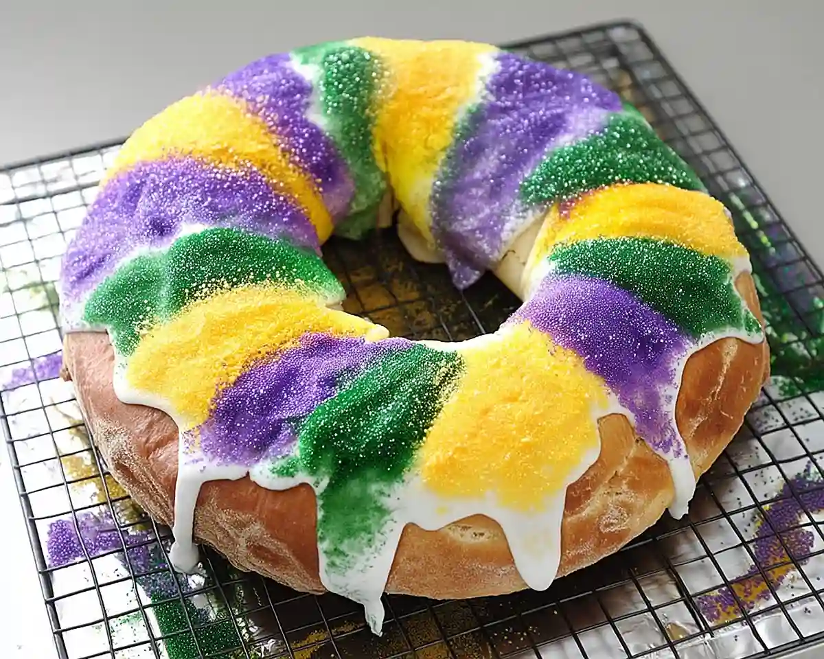 Easy King Cake for Mardi Gras Recipe: Creamy Cream Cheese Filling & Colorful Glaze