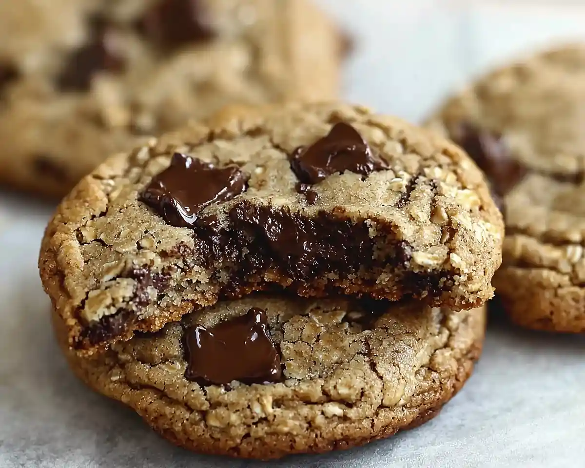 These oat flour chocolate chip cookies combine melted butter, rich dark brown sugar, and chopped dark chocolate chunks to create a perfectly chewy, naturally gluten-free cookie with caramelized edges and a tender center that stays soft for days.