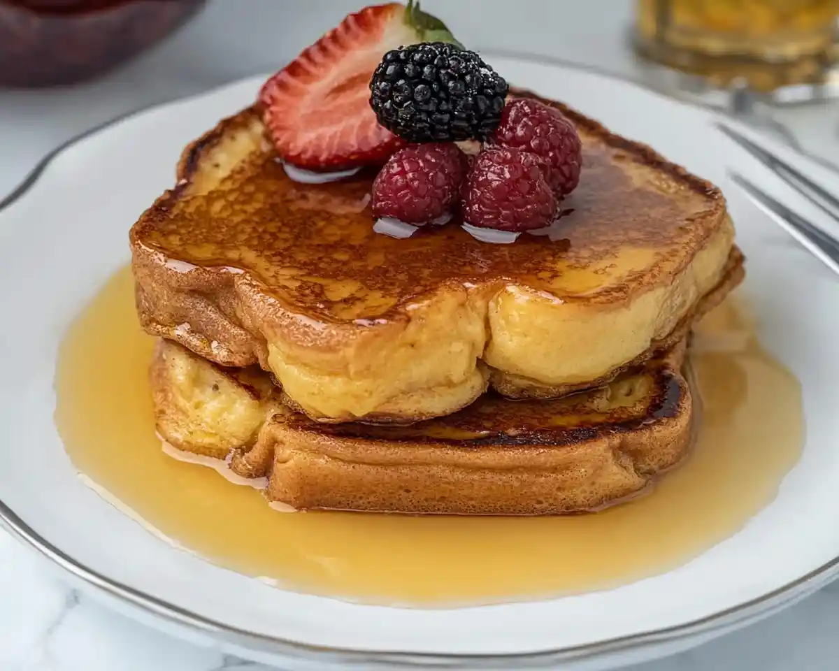 6. Serve immediately. Plate your golden French toast, drizzle with warmed maple syrup, and scatter fresh berries on top. The contrast of warm, buttery toast with cool, juicy berries is absolutely divine.